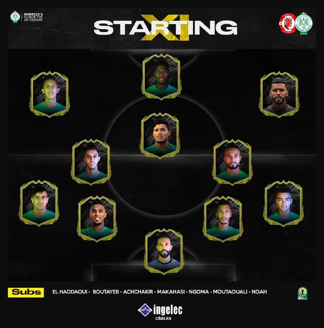 فيما يلي تشكيلة الرجاء الرياضي: