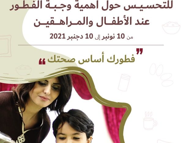 تطلق وزارة الصحة والحماية الاجتماعية، الحملة الوطنية التحسيسية حول أهمية تناول وجبة الفطور لدى الأطفال والمراهقين، وذلك خلال الفترة الممتدة من 10 نونبر إلى 10 دجنبر2021، تحت شعار: