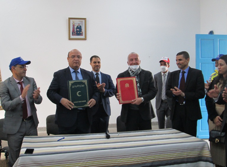 وفي الختام، شهد الحفل توقيع اتفاقية شراكة بين الأكاديمية والهلال الأحمر المغربي. كما قام مدير الأكاديمية، بهذه المناسبة، بتسليم شواهد الشكر والعرفان لكل من حسن مجاهد، رئيس خلية التحسيس بالمؤسسات التعليمية بولاية الأمن، ومولاي حفيظ العلوي، الرئيس المنسق الجهوي للهلال الأحمر المغربي بجهة مراكش- آسفي.