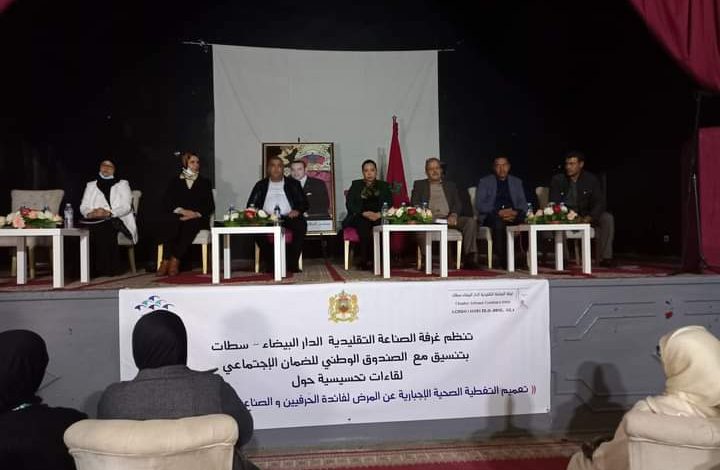 ويندرج هذا اللقاء في إطار سلسلة اللقاءات التواصلية؛ التي تنظمها غرفة الصناعة التقليدية بجهة الدار البيضاء الكبرى سطات، وبشراكة مع الصندوق الوطني للضمان الاجتماعي، لفائدة الفئات المستهدفة من هذا المشروع الإجتماعي الهام، ضمن الجهود الرامية إلى تنزيل ورش التغطية الصحية الإجبارية للمهنيين .