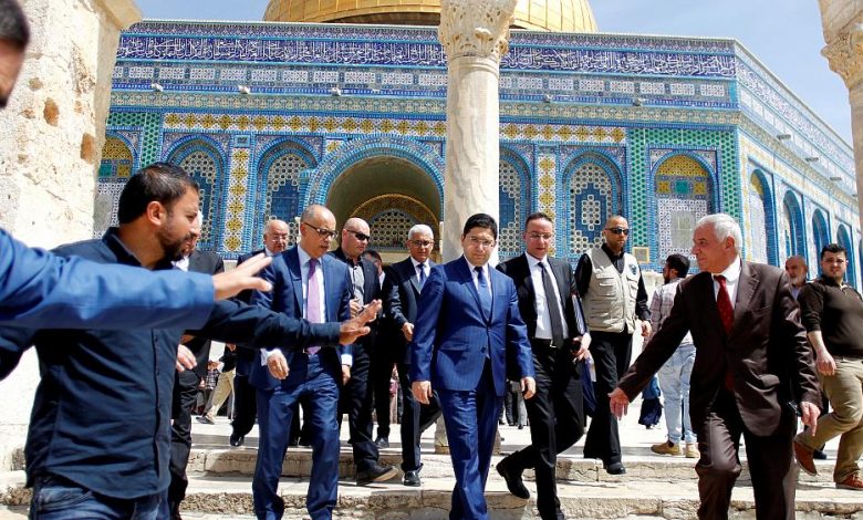 ودعا في هذا السياق إلى ضرورة أن يكون موقف الدول العربية موحدا ولا تشوبه أي مزايدات عقيمة حيال أهمية القيام بجهد دبلوماسي مكثف للمحافظة على مدينة القدس الشريف باعتبارها تراثا مشتركا للإنسانية وأرضا للقاء ورمزا للتعايش السلمي بالنسبة لأتباع الديانات التوحيدية الثلاث كما جاء في نداء القدس الذي وقعه صاحب الجلالة الملك محمد السادس بمعية قداسة البابا فرنسيس في الرباط 30 مارس 2019 .