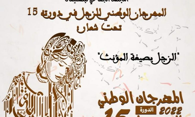 تحت الرعاية السامية لصاحب الجلالة الملك محمد السادس نصره الله، و اعتباراً للقيمة الثقافية والتاريخية لفن الزجل، و إصرارا من وزارة الشباب و الثقافة والتواصل – قطاع الثقافة – على ترسيخ تقاليد المهرجانات الثقافية الهادفة إلى الكشف عن غنى الموروث الفني المغربي والتعريف به و تقريبه من الجمهور الواسع، تنظم المديرية الجهوية لقطاع الثقافة بتعاون مع عمالة إقليم بنسليمان و المجلسين الإقليمي والجماعي لبنسليمان، الدورة الخامسة عشر من المهرجان الوطني للزجل من 03 إلى 05 يونيو 2022 بإقليم بنسليمان و ذلك تحت شعار “الزجل بصيغة المؤنث” حيث ستسلط الضوء على المرأة المبدعة و الخلاقة للكلمة الموزونة.