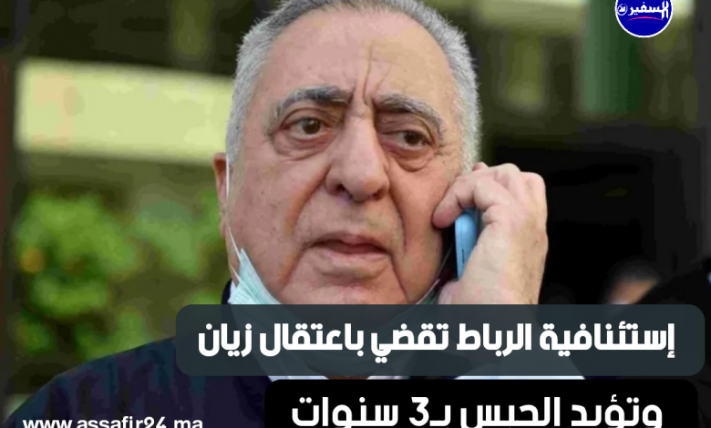 وسبق لابتدائية الرباط أن أدانت زيان خلال شهر فبراير الماضي، بالسجن ثلاث سنوات نافذة.