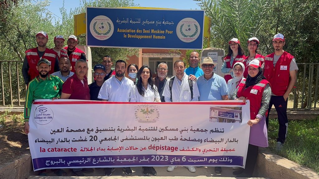 نظمت جمعية بني مسكين للتنمية البشرية بالبروج، بشراكة مع مصحة العين بالدار البيضاء، ومصلحة طب العيون بالمستشفى الجامعي 20 غشت بالدار البيضاء، طيلة يوم أمس السبت 06 ماي 2023، بمقر الجمعية الكائن بالبروج، حملة طبية إستهدفت الفئات المعوزة والهشة، قصد المساهمة في التصدي لداء الجلالة la cataracte، الذي يعرف إنتشارا واسعا في منطقة بني مسكين بإقليم سطات، من خلال تنظيم عمليات للتحري والكشف والتشخيص لهذا الداء، التي إستفاد منها حوالي 300 شخص .