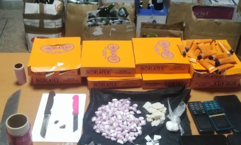 وأضافت ذات المصادر، بأنه جرت مداهمة منزل تاجر الممنوعات مساء أول أمس السبت، من طرف رجال عبد اللطيف حموشي، الشيء الذي أسفر عن حجز 50 غرام من مخدر البوفا و 10 غرامات من الكوكايين، و 400 علبة لصاق (سيلسيون) و 60 لتر من مسكر ماء الحياة (الماحيا)، و600 جعة (سبيسيال) و 100 قنينة من النبيذ الأحمر و 100 قرص مهلوس وكيلوغرام من القنب الهندي (الكيف) وأوراق التبغ (طابا) مقصصة ومعدة للبيع، كما تم حجز أسلحة بيضاء من أنواع وأحجام مختلفة .