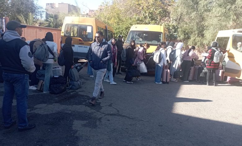 على وقع الأهازيج والاغاني الشعبية ، المعبرة عن أصالة أهالي وسكان جماعات إقليم الحوز ، وعاكسة وجهاً حضارياً آخر من موروثنا الشعبي وخصوصية ثقافتنا وهويتنا الامازيغية ،وفي ظل أجواء عامرة بالغبطة والبهجة، انطلقت صباح اليوم الاحد 3 دجنبر قوافل الفرح التي تقل تلميذات داخلية محمد السادس التقنية اللائي يتابعن تحصيلهن الدراسي بمراكش نحو تخوم الدوواير المكونة لجماعة ويركان بإقليم الحوز لقضاء ايام العطلة البينية الثانية بين ذويهن وعائلاتهن، فتيات يافعات متشحات بازياء تقليدية ، مستبشرات بقدوم العطلة البينية، يستبد بهم الشوق والحنين بموعد عودتهم للديار ، اهازيج شعبية رقيقة وشيقة تعكس الفرح عنوانا لمعانقة الأهل و مراتع الطفولة ، وشعارا لدلالات المحبة والوئام والوفاء التي غلفت حفاوة وحميمية استقبالهن بمراكش.