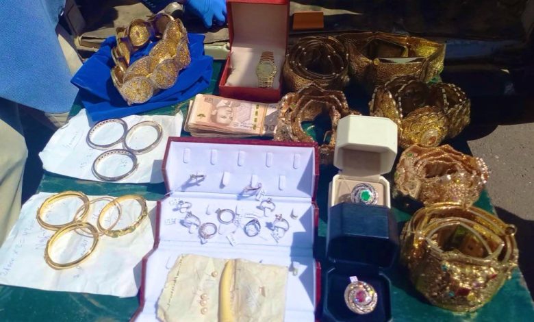 وأوضح المصدر، أن إجراءات التفتيش المنجزة في إطار هذه القضية مكنت من حجز الخزنة والمجوهرات موضوع السرقة، فضلا عن حجز سيارتين خفيفتين ولوحات ترقيم مزيفة وأسلحة بيضاء ومعدات لتكسير الأقفال، وقفازات وأقنعة حاجبة للمعطيات التشخيصية، يشتبه في كونها استعملت في تنفيذ هذه العملية الإجرامية.