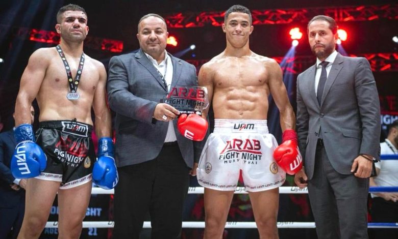 من بين المباريات المثيرة والتي استأثرت باهتمام كل المتتبعين للنسخة الأولى من البطولة العربية الاحترافية “ليلة القتال للمواي طاي” التي احتضنتها قاعة الأرينا 42 بمدينة أبو ظبي بالإمارات العربية المتحدة مساء يوم السبت 18 غشت ، والمنظمة من قبل منظمة UAM واتحاد الإمارات للكيك بوكسينغ والمواي طاي وتحت إشراف الاتحاد العربي للمواي طاي، ذلك النزال الملتهب الذي دار بين البطل المغربي محمد ياسين محسون ومنافسه البطل العراقي أكرم الأنيسي والذي آلت نتيجته لصالح البطل المغربي بعد الإصابة البليغة التي ألحقها بخصمه على مستوى جبهته بسبب التقنية الدقيقة التي سددها له ، وبعد سيطرته المطلقة عليه طيلة أطوار جولات هذه المباراة التي جمعت بينهما برسم الوزن 72,5 كلغ ، علما أن البطل أكرم الأنيسي وعضو المنتخب الوطني العراقي للنخبة يعتبر من أبرز المقاتلين العرب ضمن هذا الوزن .