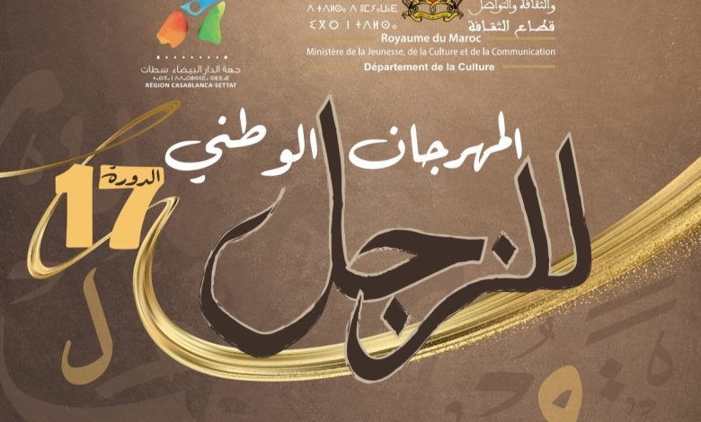 تحت الرعاية السامية لصاحب الجلالة الملك محمد السادس نصره الله، تنظم وزارة الشباب والثقافة والتواصل -قطاع الثقافة – ومجلس جهة الدار البيضاء- سطات، من 31 أكتوبر إلى 3 نونبر 2024، المهرجان الوطني للزجل، وذلك بمدن بنسليمان، بن أحمد، أزمور والدار البيضاء.