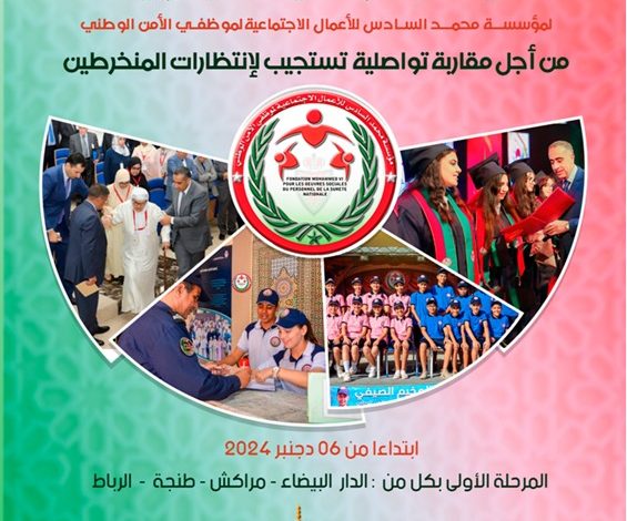 تنظم مؤسسة محمد السادس للأعمال الاجتماعية لموظفي الأمن الوطني، أيام 6 و7 و8 دجنبر الجاري، النسخة الأولى للأيام التواصلية للقرب لفائدة منخرطي المؤسسة من موظفي الأمن الوطني الممارسين والمتقاعدين وكذا أبنائهم وباقي ذوي حقوقهم، وذلك بفضاء خاص تم تجهيزه بالقاعة متعددة الرياضات محمد مجيد بمدينة الدار البيضاء.