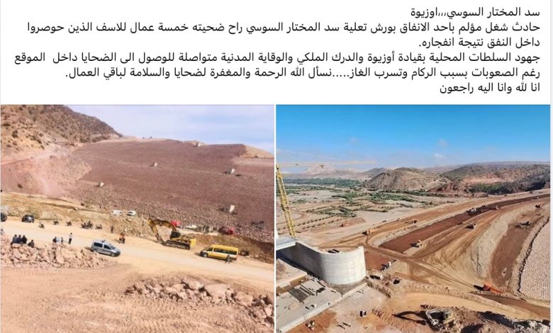 خمسة قتلى في انفجار نفق بورش سد “المختار السوسي” ضواحي تارودانت