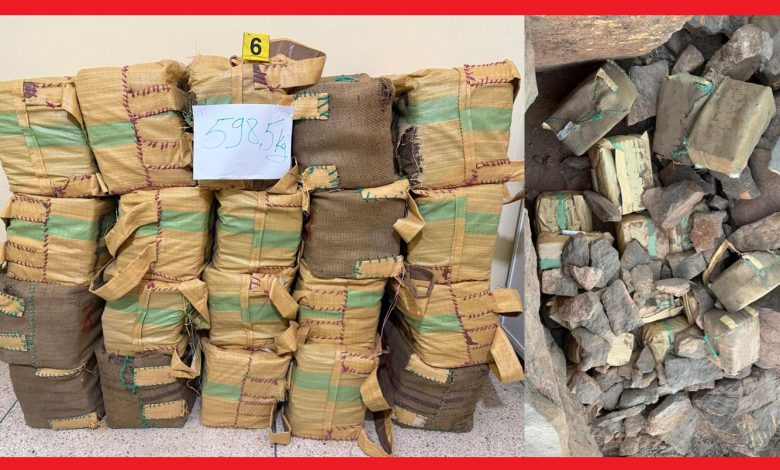 وحسب مصدرأمني لـ”السفير 24″ قد تم تنفيذ هذه العملية الأمنية بتنسيق مع عناصر الدرك الملكي بالمنطقة القروية “فم الحصن”، التي تبعد بحوالي 120 كيلومترا عن مدينة طاطا، وأسفرت عن حجز 20 رزمة من مخدر الشيرا بلغ مجموع وزنها 598 كيلوغراما و500 غراما، والتي تم اكتشافها مخبأة في منطقة صخرية في انتظار عملية تهريبها.