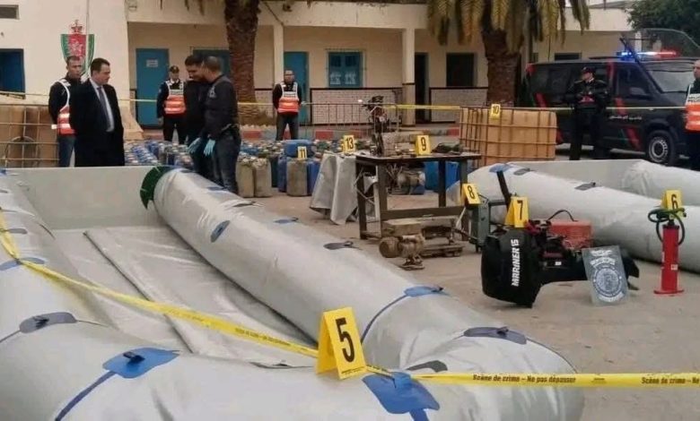 وتوثق الصورة المرافقة لحظة التدخل الأمني وسط أجواء يسودها الترقب والتوتر، بينما تغيب الشمس خلف الزوارق المحجوزة، في مشهد يلخص حزم الأجهزة الأمنية في التصدي لكل أشكال الجريمة المنظمة.