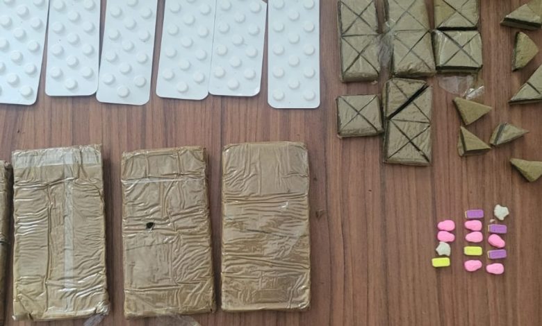 وأكد المصدر، أنه خلال عملية التفتيش التي أجريت وفق الضوابط القانونية، تم ضبط عدة صفائح من مخدر الشيرا وقطع مجزأة معدة للبيع بلغ وزنها الإجمالي 620 غراماً، بالإضافة إلى 140 قرصاً مهلوساً بألوان وأحجام مختلفة، من بينها ريفوتريل وإيكستازي.