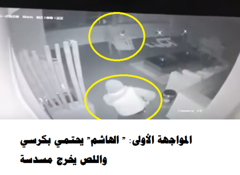 وخرج “الهاشم”؛ من احدى الغرف ومعه المسدس، حين عرف أن اللص توجّه إلى غرفة البنات، ويظهر الفيديو توجّهه بسرعة إلى مكان اللص وإطلاق الرصاص عليه.