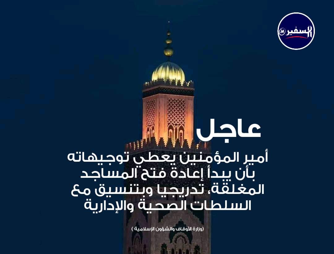 عاجل.. الملك محمد السادس يعطي أوامره بفتح بقية المساجد المغلقة بالمغرب